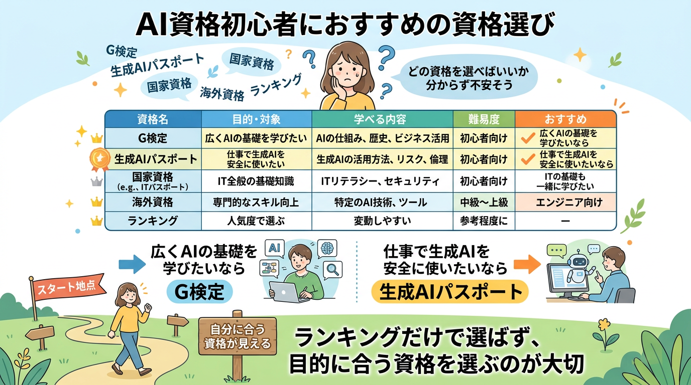 - AI資格ランキングで見る初心者向け資格の選び方